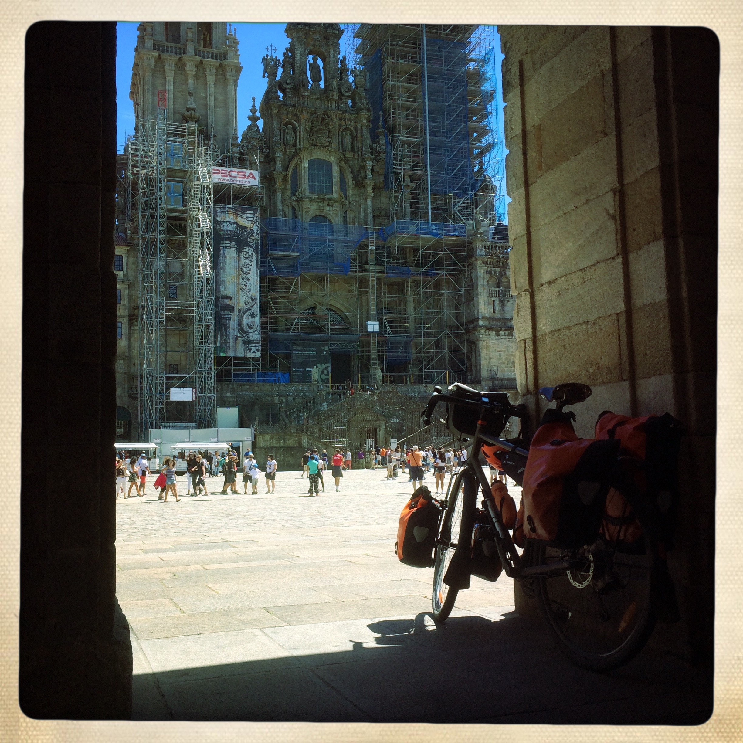 Om schoon te zijn of te worden moet men eerst afzien hé. Net zoals de kerk of basiliek op de achtergrond. Eenmaal de stijgers weg zijn zal het prachtig zijn. Dit is net zoals je reis. afzien, zweten, wroeten en ploerten, maar nu is het volgens mij prachtig.